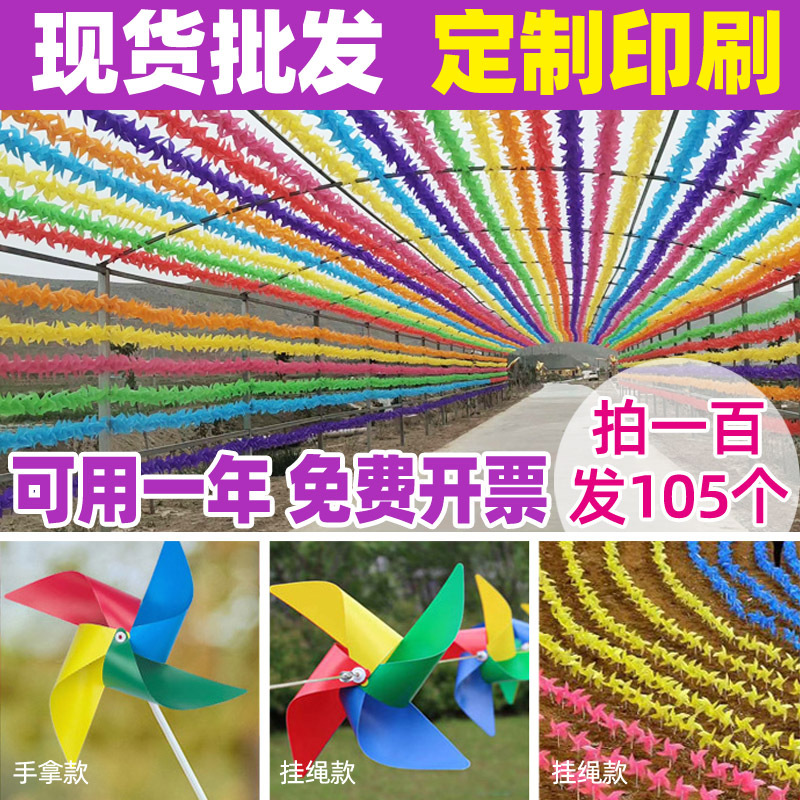 景区户外长廊塑料风车婚庆幼儿园装饰串绳悬挂儿童小风车现货批发