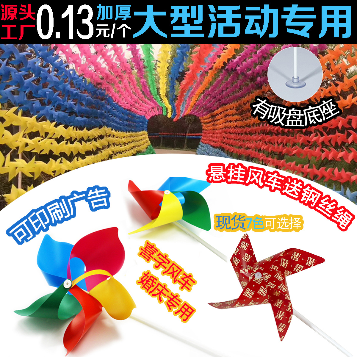 彩虹长廊七彩风车户外装饰景区地推小风车配件儿童玩具大风车批发
