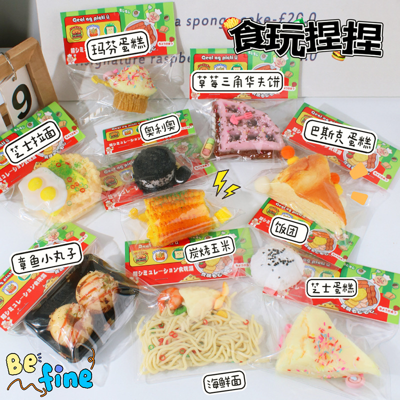 仿真食玩捏捏乐芝士蛋糕吐司华夫饼捏捏乐仿真冰淇淋解压玩具捏捏