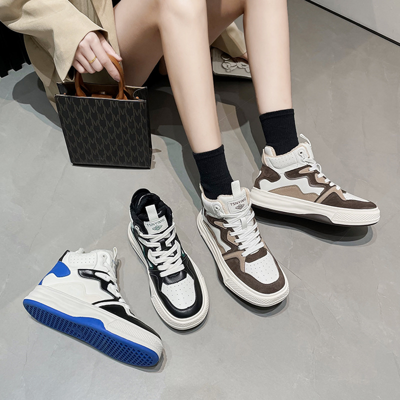 高帮鞋女真皮2023新款韩版休闲厚底加绒防滑板鞋秋冬时尚学生鞋